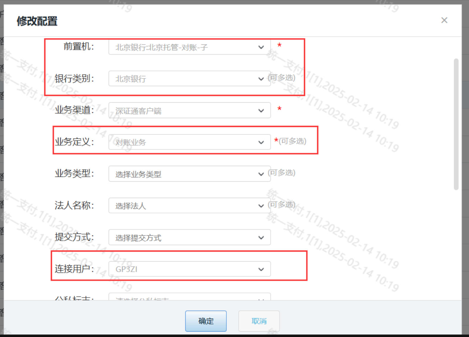 这里的业务定义“对账业务”默认是不可见的, 需要 先修改后台表(暂时不知道现场如何改的,先手动改)